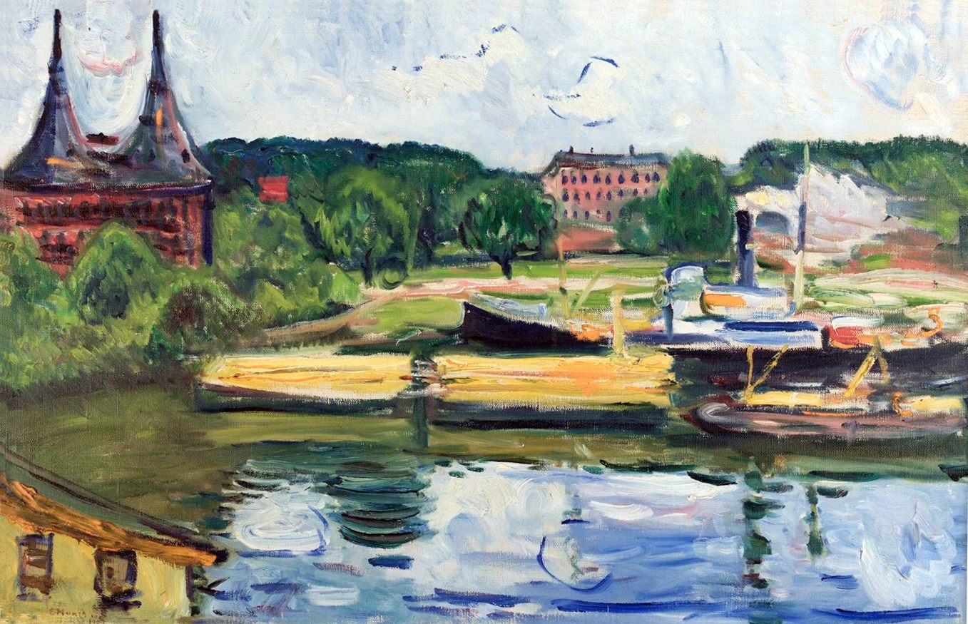 "Lübecker Hafen mit Holstentor" (Öl auf Leinwand; Höhe: 84 cm Breite: 130 cm) ist ein Gemälde des norwegischen Malers Edvard Munch (1863 - 1944). Er wurde u.a. für "Der Schrei" bekannt, das eine menschliche Figur unter einem roten Himmel zeigt, die ihre Hände gegen den Kopf presst, während sie Mund und Augen angstvoll aufreißt.