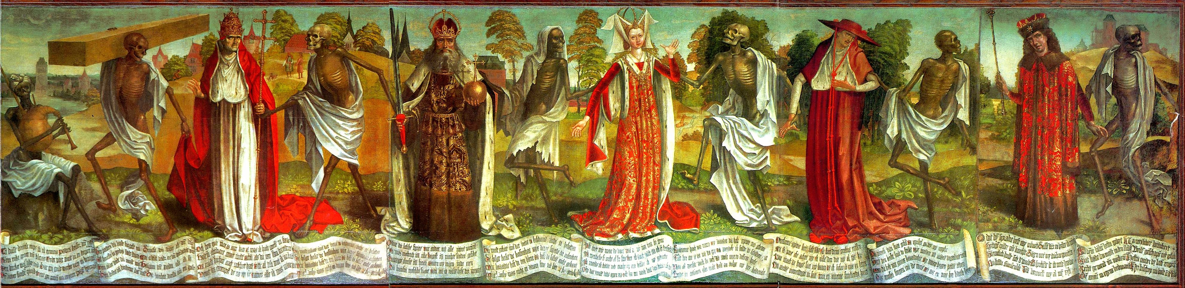 Das Fresko zeigt eine Reihe von Skeletten, die in einer Prozession Vertreter verschiedener Gesellschaftsschichten zum Grab begleiten, wo eine Figur des Todes wartet, die ebenfalls als Skelett auf einem Thron dargestellt ist. Die Figuren sind: ein Papst, ein König, eine Königin, ein Kardinal, ein Bischof, ein Mönch, ein Kaufmann, ein Ritter, ein Bettler und ein Baby.